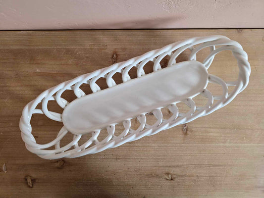 Eucalyptus Stonewear White Ceramic "Woven" Bread Basket